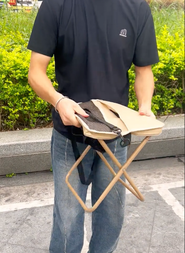 My girlfriend loves to shop, so I'm always stuck waiting with nowhere to sit. This little chair has been a lifesaver. I clip it to my bag, unfold it when I need a break, and I'm good to go. Super lightweight but holds up great. Can't believe I went this long without it!